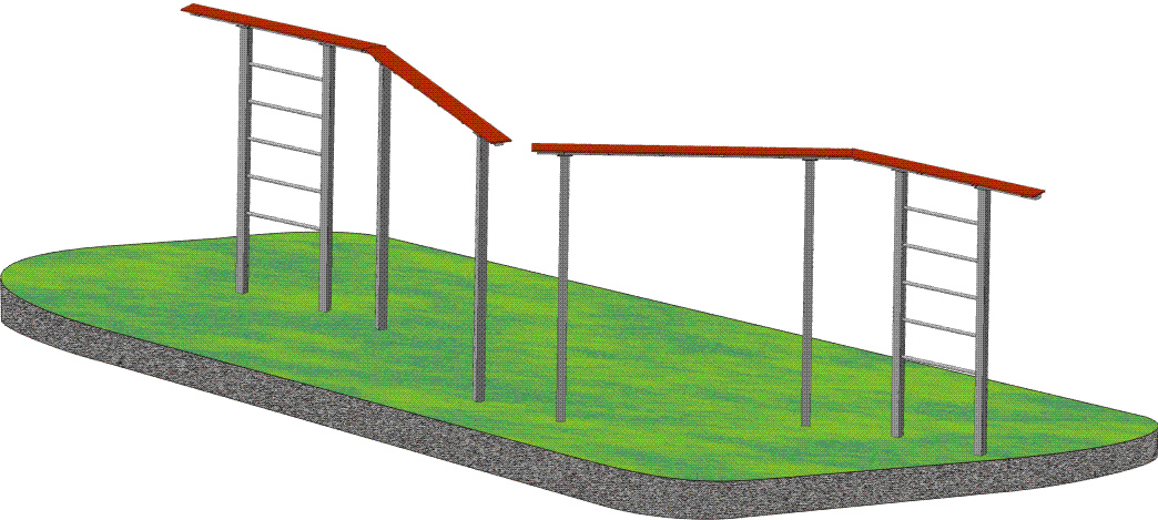 Это оборудование входит в состав «Универсальной полосы препятствий» и устанавливается между препятствиями "Забор с наклонной доской" и «Разрушенным мостом».